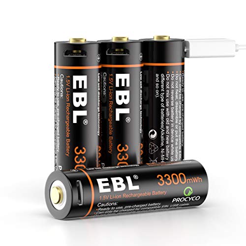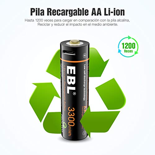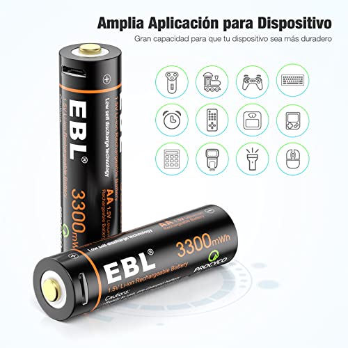 EBL Pilas Recargables AA 3300mWh Alta Capacidad con Micro USB, Pilas AA Precarga y Baja Autodescarga Pilas 3300mWh (NO 3300mAh)
