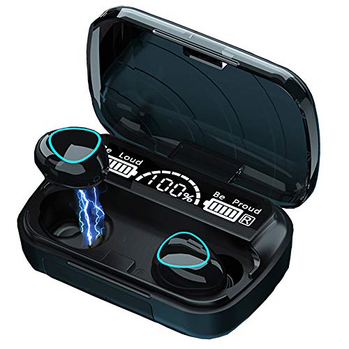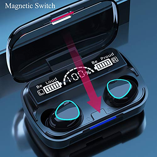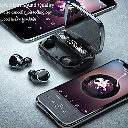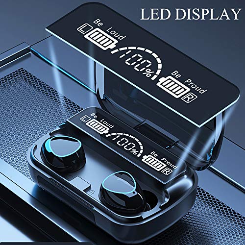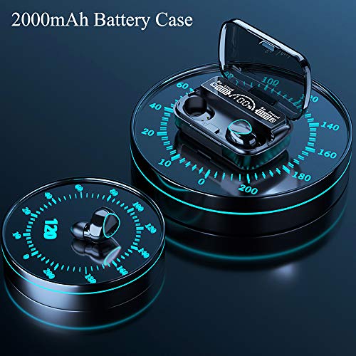 - ★ Pantalla de batería LED y banco de energía ★. La caja de carga de 2000mAh de los auriculares bluetooth equipa pantalla LED que muestra el volumen de potencia y el volumen de potencia de los auriculares. La funda de carga puede cargar auriculares 25 veces, proporciona tiempo de juego de 120 horas, los auriculares pueden jugar de 4 a 5 horas cada vez. También se puede utilizar como un banco de energía portátil para su teléfono móvil o tableta, muy útil en su viaje o viaje de negocios.