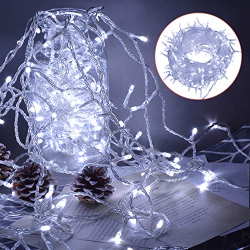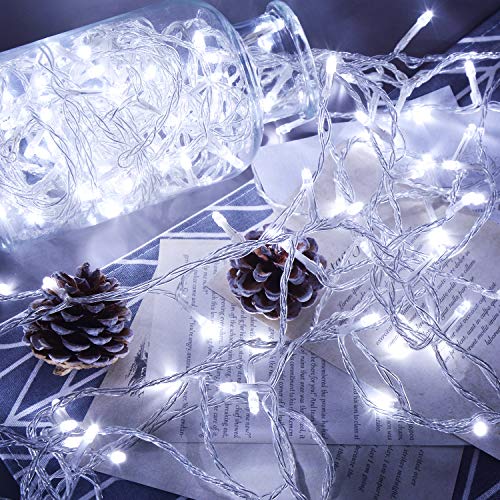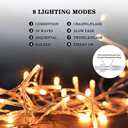 Uping Cadena de Luces, Guirnalda Luminosa 300 LED, 8 Modos de Luz con Conector, para Jardines, Casas, Boda, Navidad (Blanco Cálido)