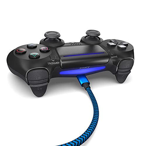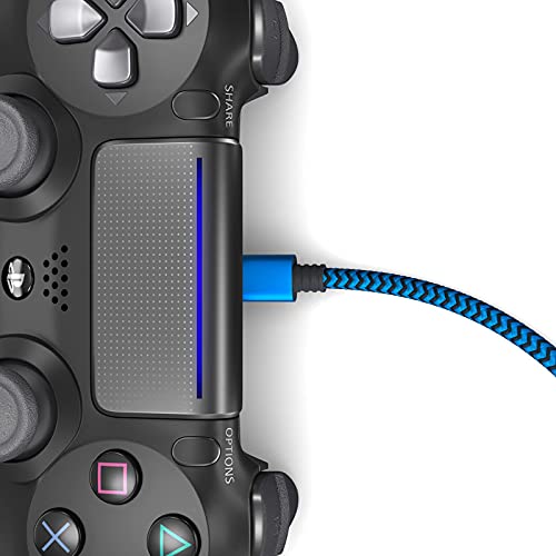 2X 4m de Cable de Carga de Nylon PS4 para el Controlador de la Playstation 4, Cable Micro USB, Cable de Carga Micro USB, Micro USB, Funda de Tela, Enchufe de Aluminio, Azul-Negro