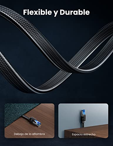 UGREEN Cable Ethernet Cat 8, Cable Red CAT8 Trenzado Plano Cable LAN 40Gbps 2000MHz Cable RJ45, Compatible con PS5, Xbox X/S, PC, PS4, TV Box, Router, Servidor NAS, Cat 7, Cat 6a, 10 Metros
