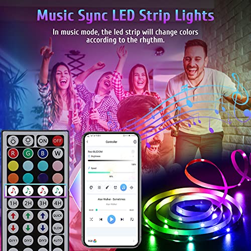 - ❤️【Sincronización de Música】 La tira led tiene una función de sincronización musical: la tira de led puede cambiar de color al ritmo de la música. Podría pulsar la tecla de música del mando a distancia o hacer clic en la señal de música de la APP RociLife para activar el modo de música. Además, si quiere reproducir música a través de otra aplicación móvil o dispositivo externo, haga clic en la señal del micrófono de la APP RociLife.