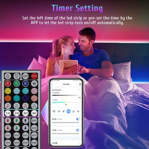 - ❤️【Función de Temporización & Tiempo Restante】 La tira de led se puede configurar para que se encienda/apague automáticamente de acuerdo con su horario, sólo necesita establecer sus tiempos a través de la APP, y también podría elegir el día de la semana para estos tiempos. Además, usted puede establecer el tiempo restante de 1H, 2H, 3H, o 4H cuando la tira de LED está trabajando.