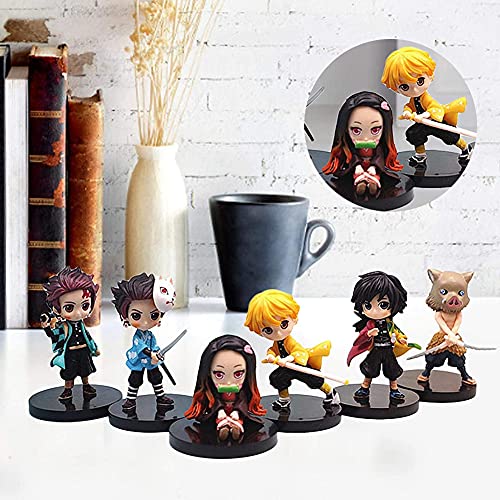 CYSJ Demon Slayer Cupcake Topper 6Pcs Figuras de acción Decoración de Tartas Figuras Decoración para Tarta de cumpleaños de Anime de Dibujos Animados del Fiesta Suministros
