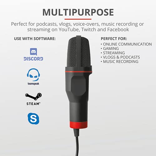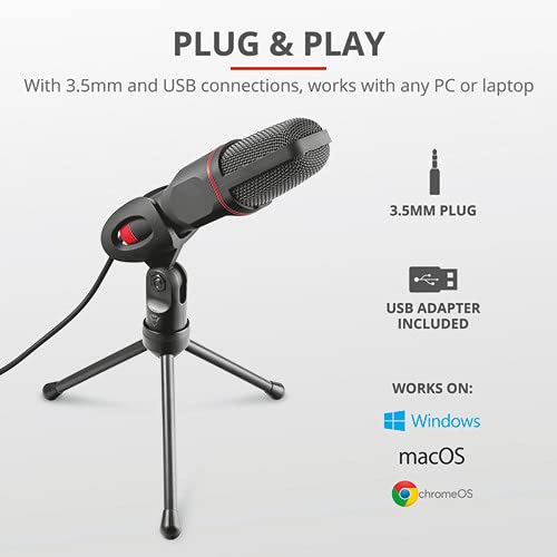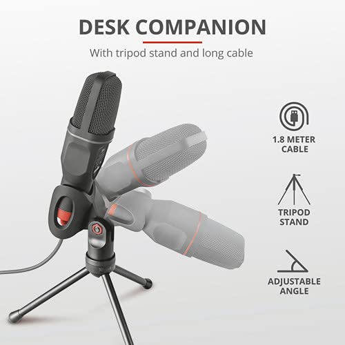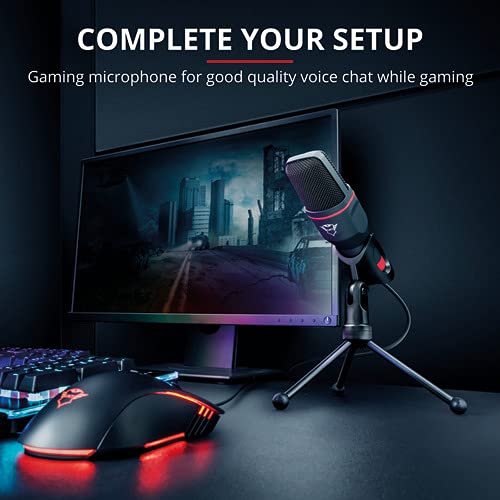 Trust Gaming GXT 212 Mico Micrófono PC USB, con Conexiones de 3,5 mm y USB, Incluye trípode, Cable de 1,80 m, para Streaming, Twitch, Youtube, PC, PS4, PS5 - Negro
