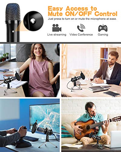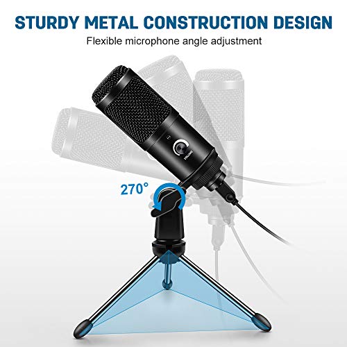TONOR PC Micrófono de Cardioide Condensador Computadora USB Plug & Play con Soporte Trípode & Filtro Pop para Grabación Vocal, Podcasting, Transmisión, Video de Youtube para Laptop Desktop PC
