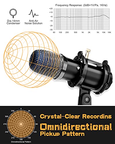 - 【Micrófono Capacitivo Profesional】El rango de frecuencia del micrófono capacitivo es de 100 Hz a 16 kHz.Mediante el uso de la tecnología de recogida en forma de corazón, usted puede reducir eficazmente el sonido lateral y trasero para que su voz sea más clara y realista.Nota: no coloque el micrófono demasiado cerca de la pared y la fuente de alimentación.