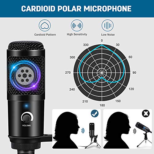 - 【Diseño inteligente de perilla de volumen】La perilla de ajuste de volumen en el micrófono condensador puede ajustar el volumen hacia arriba / abajo según sus necesidades, o silenciar el micrófono sin tener que operar en la computadora, lo cual es más simple y conveniente.