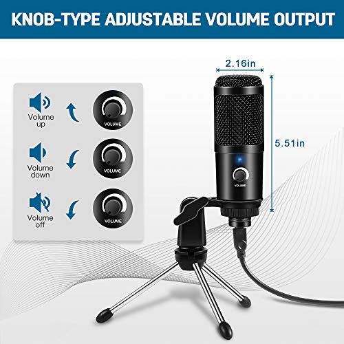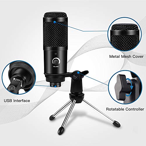 EIVOTOR USB Micrófono, Micrófono de Condensador, con Trípode Ajustable, para Mac, OS, Windows, Computadoras, Streaming, Podcasts, Youtube, Locución, Skype, TikTok