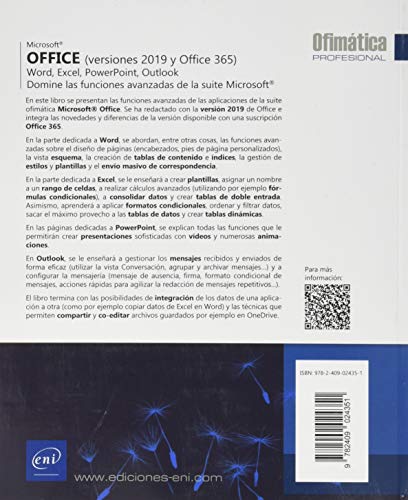Microsoft® Office (versiones 2019 y Office 365): Word, Excel, PowerPoint, Outlook - Domine las funciones avanzadas de la suite Microsoft®