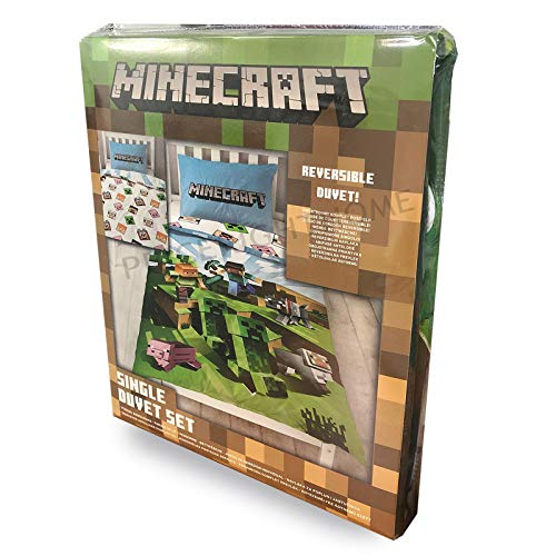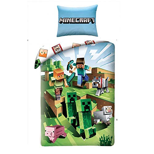 Halantex Juego de Cama Minecraft Cactus Que corren Funda nórdica y Funda de Almohada de algodón 140 x 200cm + Funda de Almohada 70 x 90cm Original