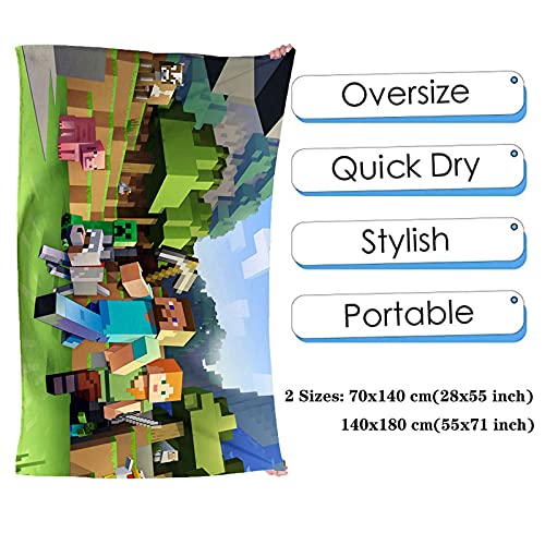 UNILIFE Toalla de Playa Toallas de Baño Minecraft Toalla de Piscina de Microfibra con Impresión Digital Secado Rápido Sin Arena 2 Tamaños