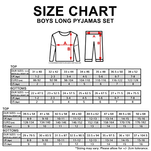 - Super suave de algodón - Nuestros pijamas realizados en su mayoría de algodón suave estupendo, aunque nota por favor que algunos colores con un acabado de brezo pueden contener hasta un 7% de poliéster. Estos pijamas están disponibles en una combinación de colores negro / gris y tamaños de 4-5yrs a 14-15yrs. La parte superior cuenta con un acabado de cuello redondo, mientras que los pantalones tienen una cintura elásticos.