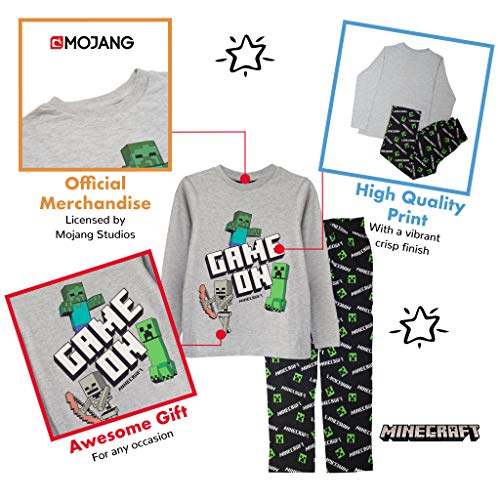 Minecraft En Juego Chicos Larga Pijamas Set Negro/Gris Brezo 134 | Regalos PS4 PS5 del Jugador de Xbox, los Chicos del Colegio Pijamas, Ropa de los niños, niños y Regalo de cumpleaños Idea