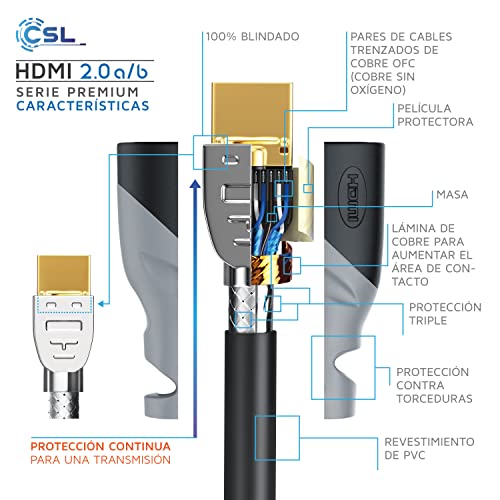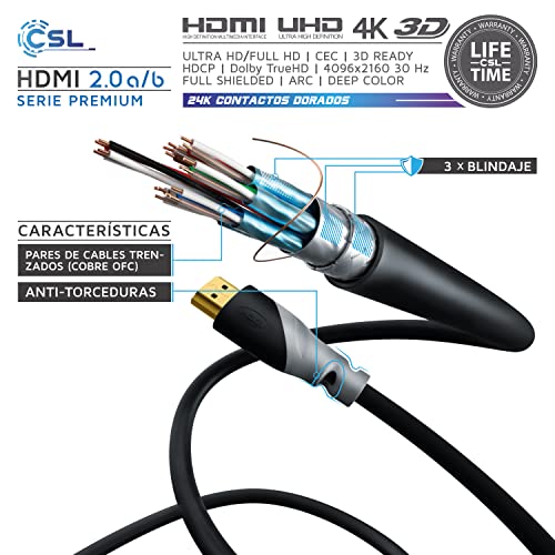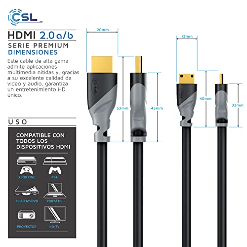 CSL - 10m metros cable Mini HDMI 1.4a 2.0 alta velocidad con AUTÉNTICA compatibilidad 3D y Ethernet - apto para Full HD Ultra HD HD Ready 3D - 1080p 2160p 4k