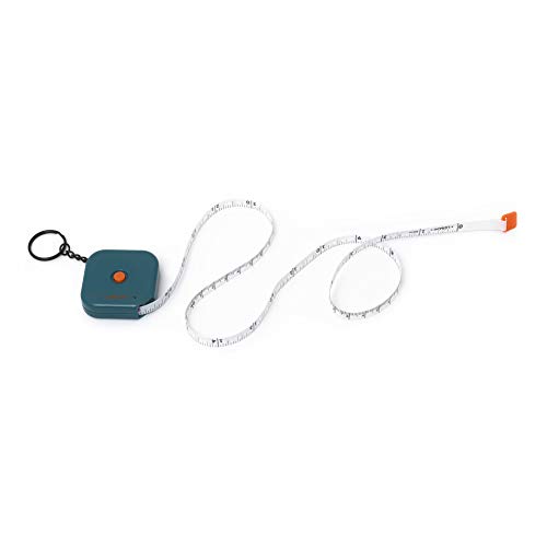 - Cuenta con doble graduación que permite medir tanto en pulgadas como en centímetros y un botón para que el metro se enrolle automáticamente sobre sí mismo.