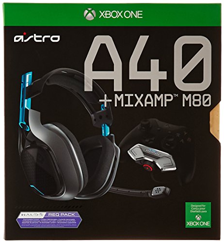 Astro 3AS42-MSU9H-500 - Auriculares de diadema cerrados (con microfono) A40 y decodificador de audio MixAmp Pro M80 Halo, negro y gris y azul