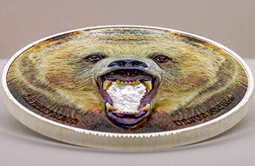 Power Coin American Grizzly Bear Oso Rare Wildlife 2 Oz Moneda Plata 1500 Shillings Tanzania 2020