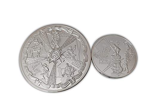 - ★ Impresionante juego de recuerdo de la Segunda Guerra Mundial de Rusia chapado en plata contiene monedas grandes de 60 mm de diámetro + moneda mediana de 40 mm de diámetro.
