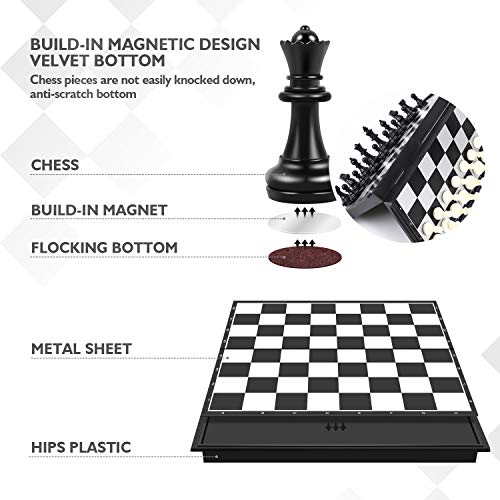 Peradix Tablero Ajedrez magnético,Juego de ajedrez de Rompecabezas 25 X 25CM Plegable y fácil de Llevar,Juego ajedrez para niños y Adultos, Juegos al Aire Libre o Regalos