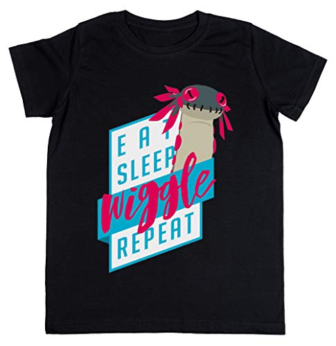 Eat Sleep Wiggle Repeat - Monster Hunter Design Niños Unisexo Niño Niña Camiseta Cuello Redondo Negro Manga Corta Tamaño XS Kids Boys Girls Black X-Small Size XS