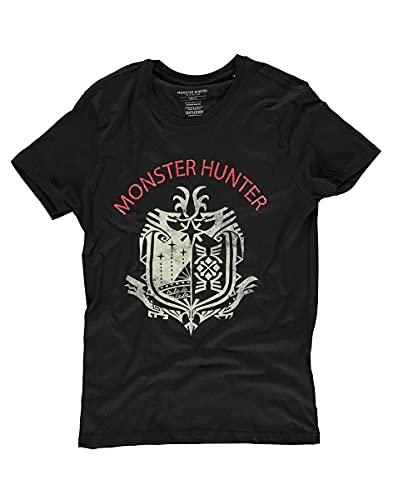 Monster Hunter Emblem Hombre Camiseta Negro M, 100% algodón, Regular
