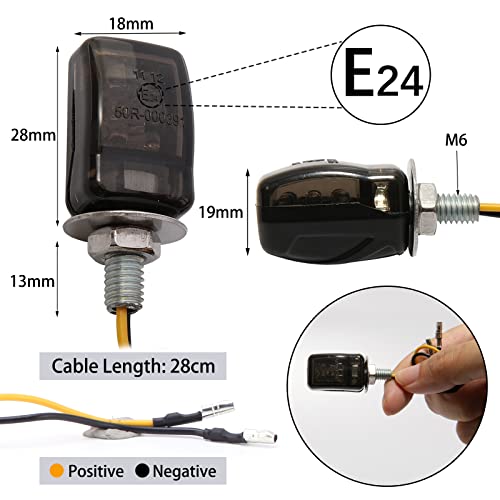 - 【Intermitentes Moto Homologados】 - Lindas luces de señal de giro con certificación E-24, Tamaño de luz: 2.8x1.8x1.9cm, Voltaje: DC 12V, Color: luz ámbar, universal para todas las motocicletas con orificio para tornillo M6. El diseño de mini apariencia simple mejora el estilo deportivo conciso de su motocicleta. Ideal para modificaciones personalizadas.