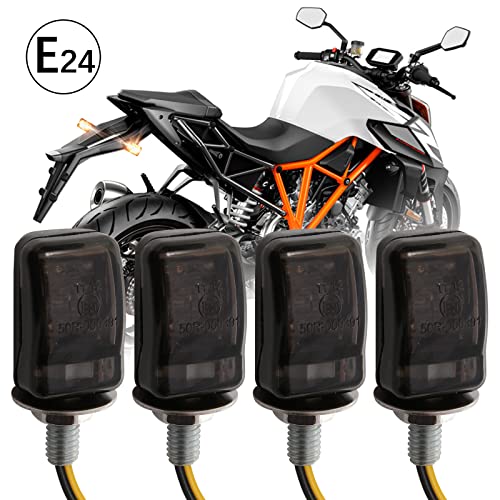 JMTBNO 4x Señales de Giro para Motocicleta Homologados E24 Mini Intermitentes Moto 6 Luces LED Universales de Luz Ámbar Lámpara de 12V para Street Bike Cafe Racer Todoterreno Enduro Scooter Quad
