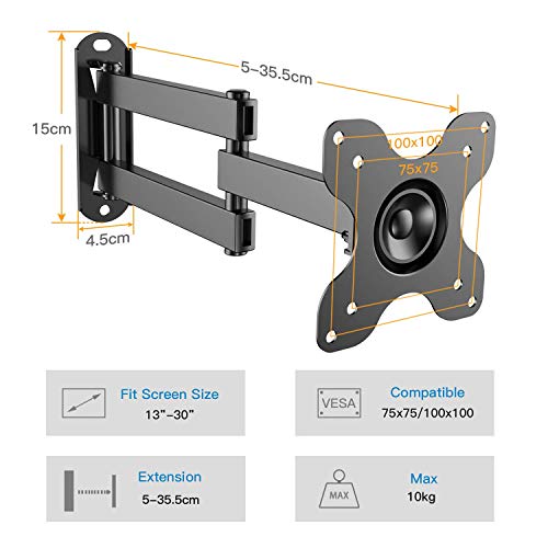 - MONTAJE DE PARED Universal para TV: Nuestro soporte para TV se adapta a la mayoría de televisores de 13-30 "que pesen hasta 10 kg. Compatible con VESA 100x100 / 75x75mm. Verifique el patrón VESA, el peso y el tamaño de su televisor antes de comprar.
