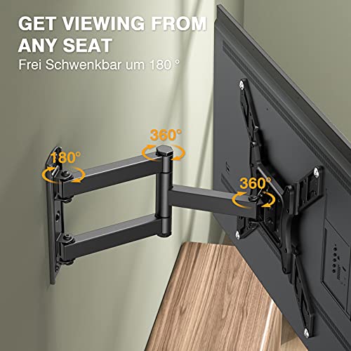 - PANTALLA ÓPTIMA AJUSTABLE: Este soporte de pared para TV premium +/-15 ° de inclinación, +/- 90 ° giratorio (el ángulo de rotación máximo depende del tamaño del televisor) y rotación de 360 ° para una máxima flexibilidad de visualización. Personalice fácilmente su experiencia televisiva para encontrar la posición de visualización más cómoda y saludable
