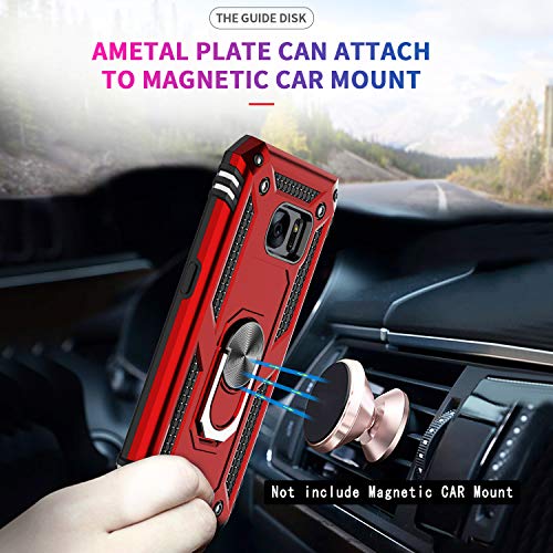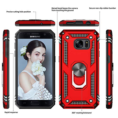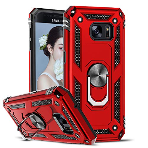 LeYi Funda para Samsung Galaxy S7,Armor Carcasa con 360 Grados Anillo iman Soporte Hard PC y Silicona TPU Bumper Antigolpes Case para Movil Samsung Galaxy S7,Rojo