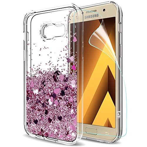 LeYi Funda Samsung Galaxy A5 2017 Silicona Purpurina Carcasa con HD Protectores de Pantalla,Transparente Cristal Bumper Telefono Gel TPU Fundas Case Cover para Movil Samsung A5 2017 A520F ZX Oro Rosa