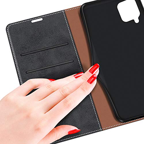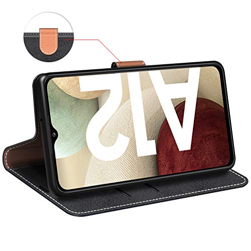 - Funda libro Samsung Galaxy A12 está hecha del cuero sintético de alta calidad y TPU silicona flexible, protege su smartphone de gotas, de golpes, de polvo y de rasguños accidentales, fuerte cierre magnético de doble cara que asegura su teléfono, dinero y tarjetas en la seguridad.