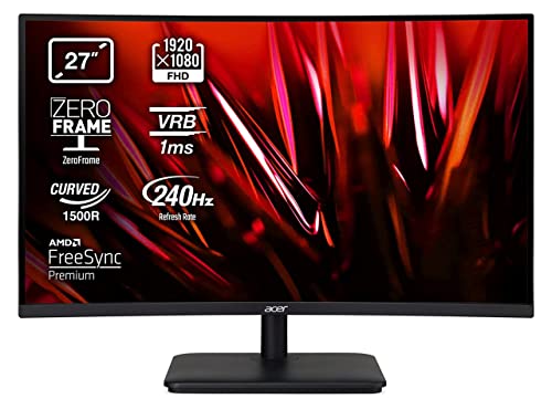 Acer ED270Xbiipx - Monitor Gaming Curvo de 27" Full HD 240 Hz (1920x1080, Pantalla VA LED, 1500 R, ZeroFrame, FreeSync Premium, 1ms VRB, 250nits, 2xHDMI DP Audio Out, EU EMEA MPRII) - Color Negro