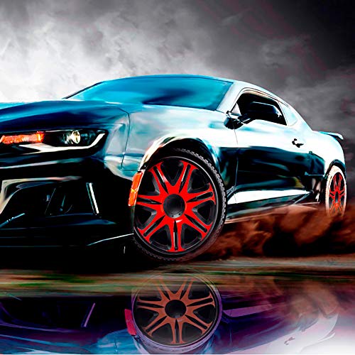 J-Tec J15512 Juego de 4 Tapacubos Nascar 15 Pulgadas Negro/Rojo, Rosso, 38 cm