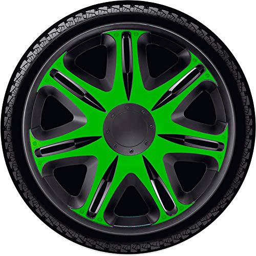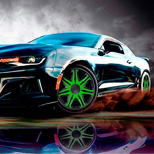 J-Tec J15513 Juego de 4 Tapacubos Nascar 15 Pulgadas Negro/Verde, 38 cm
