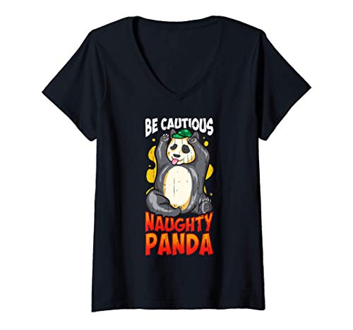Mujer Cute & Funny Be Cautious Naughty Panda Baby Panda Bear Camiseta Cuello V