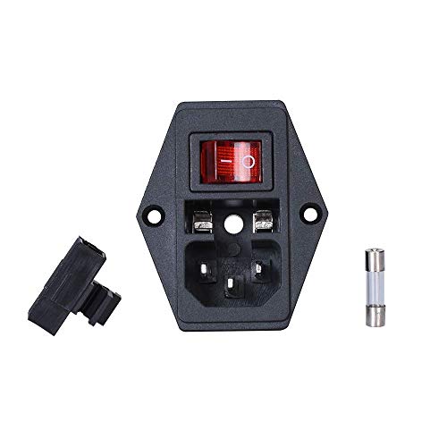 3Dman 15A 250V Rocker Switch Power Socket Inlet Module Plug 5A Fuse Switch with 18 AWG Wiring 3 Pin IEC320 C14