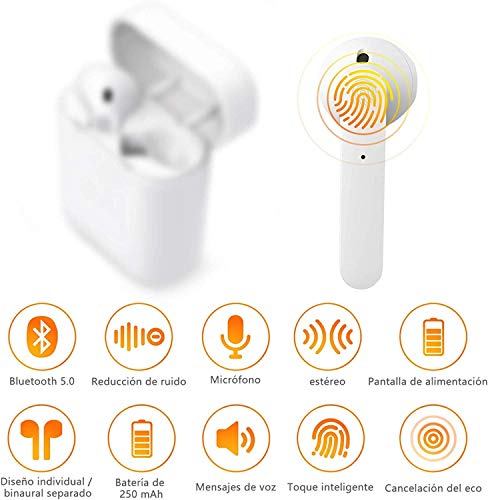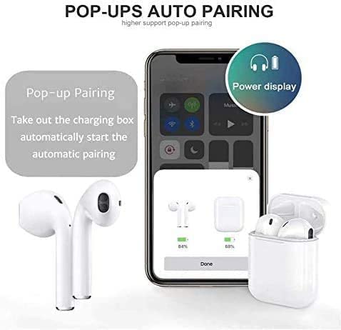 - Emparejamiento Automático y Uno botón de Control: Simplemente saque el auricular inalámbrico bluetooth de la caja de carga y se volverá a conectar automáticamente con el último dispositivo conectado, lo cual es conveniente y rápido sin esperar. Utilizado con un sensor botón físico, lo que puede controlar fácilmente los medios y las llamadas con solo tocar el botón, como avanzar / retroceder, reproducir / pausar, volumen +/-, habilitar siri y responder / rechazar llamadas.