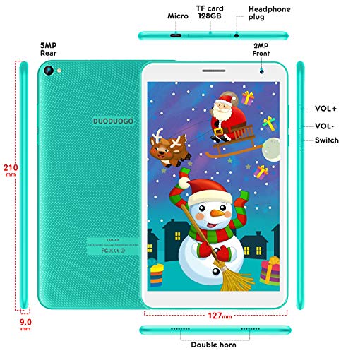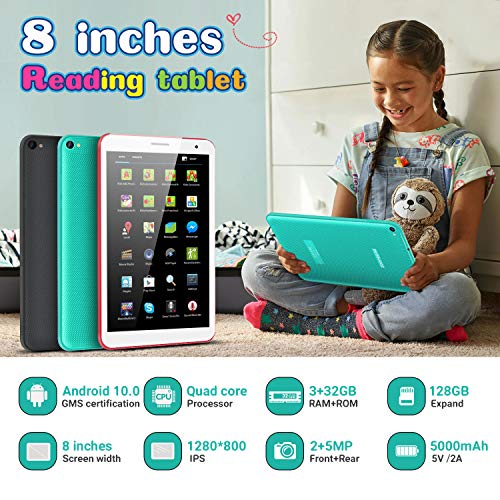 Tablet con WiFi 8.0 Pulgadas 3GB RAM 32GB/128GB ROM Android 10.0 Pie Certificado por Google GMS 1.6Ghz Tablet Quad Core Batería 5000mAh Tablet PC Netflix(Verde)