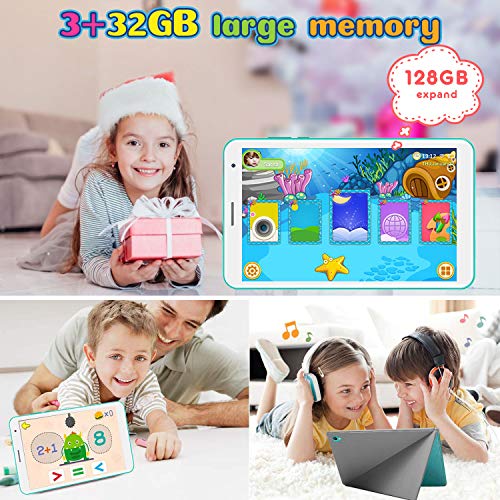 - ?【3GB+32GB Almacenamiento Escalable】La memoria RAM de 3GB del tableta le permite ejecutar más programas en segundo plano, asegurando que su computadora funcione a alta velocidad. El almacenamiento de 32GB incorporado le brinda suficiente espacio para que sus hijos almacenen música, videos y juegos. La ranura para tarjeta micro SD ofrece hasta 128GB de memoria expandible proporcionar más posibilidades para su hijo.