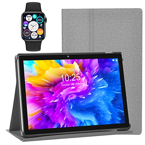 Tablet 10 Pulgadas con Reloj Deportivo Android 10 Tableta,4GB RAM + 64GB ROM,Certificación Google GMS, WiFi/Bluetooth/GPS/Type-C/OTG/Funda Protectora,con Reloj Inteligente(Gris+Reloj)