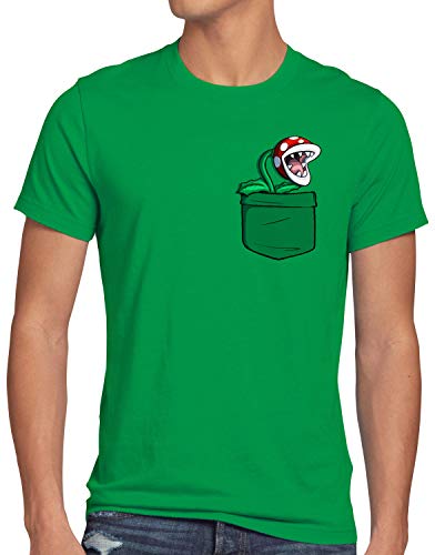 style3 Planta Piraña Bolsillo Camiseta para Hombre T-Shirt Pocket Mario Switch SNES, Talla:M, Color:Verde