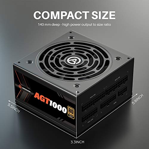 ARESGAME AGT1000 1000W Totalmente Modular 80+, Oro Certificado PC Poder Suministro