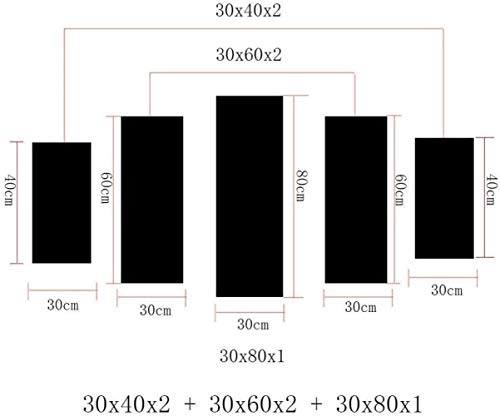 - Tamaño global: 30 x 40 cm x 2 30 x 60 cm x 2 30 x 80 cm x 1 (12 x 16 pulgadas x 2 24 x 18 pulgadas x 2 12 x 32 pulgadas x 1).