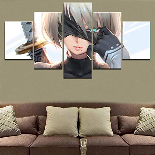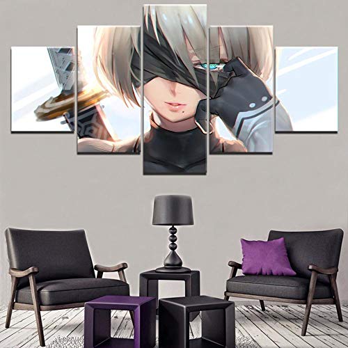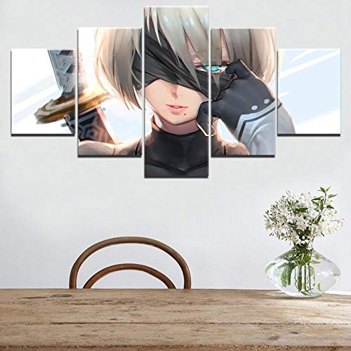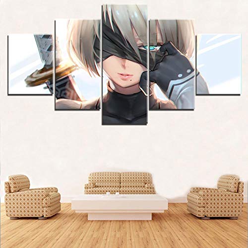 WARMBERL - Cuadro moderno de 5 piezas, diseño de Automa Nier Yorha No2 Tipo B, póster marco modular impresión sobre lienzo de alta calidad, decoración artística de pared