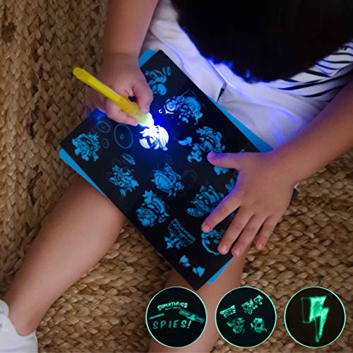 - ? REGALO ORIGINAL PARA NIÑOS ? Después de aplicar la luz UV los dibujos se irán desvaneciendo poco a poco y permanecerán en la pizarra mágica durante un máximo de 15 minutos, permitiendo así que los niños puedan volver a dibujar. Además, los bolígrafos tienen tinta invisible para escribir mensajes secretos en papel y que sólo se pueden descubrir con la luz del boli. Divertidos y originales juguetes infantiles educativos