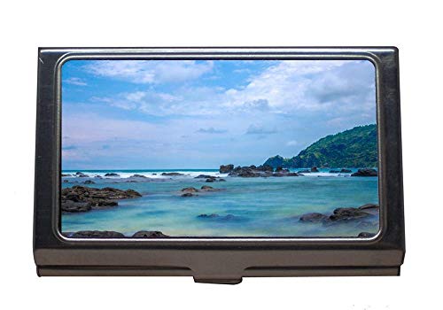 Titular de la tarjeta de nombre comercial, aguas de la playa de la bahía, titular de la tarjeta de acero inoxidable (plata 98)