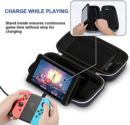 Bestico Funda para Nintendo Switch y Switch OLED - Funda de viaje para Nintendo Switch con 10 cartuchos de juegos para la consola, Adaptador de CA, cable HDMI, mando Joycon y correa Joycon