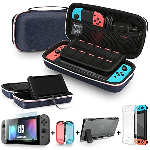 Bestico Kit de Accesorios para Nintendo Switch, incluye un Funda con Soporte para Nintendo Switch, 1 Cristal Templado Protector de Pantalla , Transparente Estuche Protector